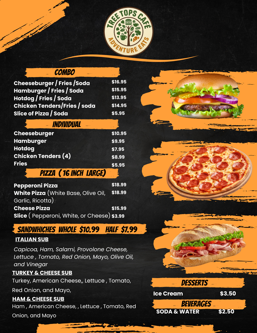 We’re excited to partner with local restaurant Jersey Brothers Pizza & Pasta to bring the Tree Tops Café Food Truck to TreeUmph! The truck will be open on weekends this fall, and the Café will be serving up favorites like pizza, burgers, and hot dogs—plus fresh coffee to kickstart your climb. Come hungry, leave happy, and keep the adventure going strong!